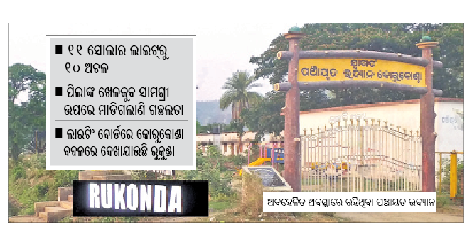 ମାଲକାନଗିରି,୧୮।୪ (ଡି.ଏନ.ଏ.): ଗ୍ରାମ ପଞ୍ଚାୟତ ସଦରକୁ ସୌନ୍ଦର୍ଯ୍ୟକରଣ କରିବା ପାଇଁ ବହୁ ଅର୍ଥ ଖର୍ଚ୍ଚ ହେଉଛି। ତେବେ ରକ୍ଷଣାବେକ୍ଷଣ ଅଭାବରୁ କିଛି ବର୍ଷ ମଧ୍ୟରେ ସେସବୁ ନିଜର ପରିଚୟ ହରାଇବା ସ୍ଥିତିକୁ ଚାଲିଆସୁଛି। ଏପରି ଦେଖିବାକୁ ମିଳିଛି ମାଲକାନଗିରି ଜିଲା କୋରୁକୋଣ୍ଡା...