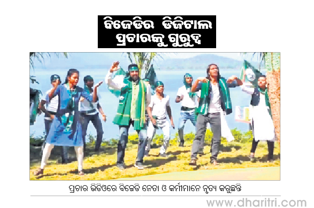 ମାଲକାନଗିରି,୩୦ା୧(ଡି.ଏନ୍.ଏ.) ଆଦିବାସୀ ବହୁଳ ମାଲକାନଗିରି ଜିଲାରେ ନିର୍ବାଚନ ପାଇଁ ବିଜେଡି ପକ୍ଷରୁ ସୋସିଆଲ ମିଡିଆ ପ୍ରଚାର ଚାଲିଛି। ଆଗଧାଡ଼ିର ନେତା ଓ କର୍ମୀମାନେ ବିଭିନ୍ନ ନୃତ୍ୟ ଓ ଗୀତର ଭିଡିଓ ମାଧ୍ୟମରେ ପ୍ରଚାର ଚଳାଇଛନ୍ତି। ଜିଲାର ଖଇରପୁଟ ବ୍ଲକ ଏକ...