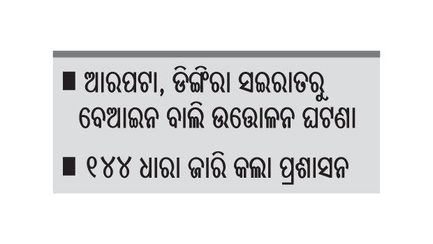 ବାରିପଦା ଅଫିସ,୩।୫ ମୟୂରଭଞ୍ଜ ଜିଲା ବଡ଼ସାହି ତହସିଲ ଅଧୀନ ଆରପଟା ଓ ଡିଙ୍ଗିରା ବାଲି ସଇରାତରୁ ବେଆଇନ ବାଲି ଉତ୍ତୋଳନ ଘଟଣା ଭିନ୍ନମୋଡ଼ ନେଇଛି। ଜାତୀୟ ଗ୍ରୀନ୍ ଟ୍ରିବ୍ୟୁନାଲ(ଏନ୍ଜିଟି)ରେ ଏନେଇ ମାମଲା ଚାଲିଥିବା ବେଳେ ବାରିପଦା ସଦର ଉପଜିଲାପାଳ ଅନ୍ୟା...
