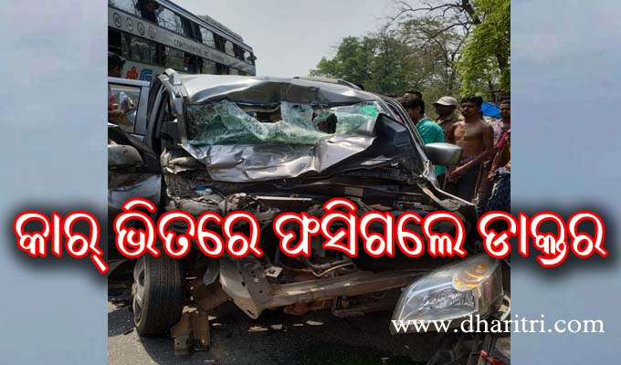 ଟ୍ରକ ପଛରେ ପିଟିଲା କାର୍, ଡାକ୍ତର ଗୁରୁତର