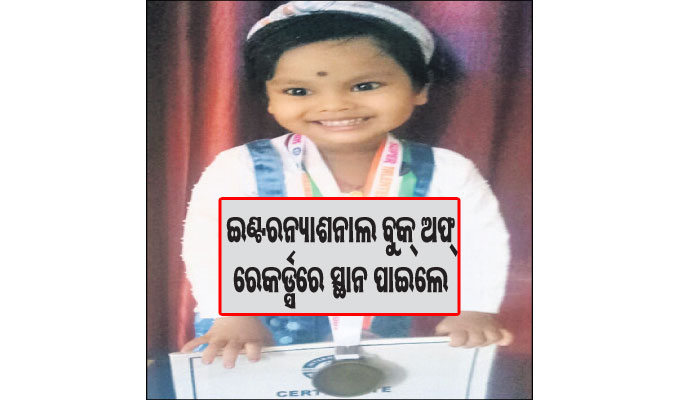 ବିଶୋଇ, ୩।୧୦(ଡି.ଏନ.ଏ.): ଇଣ୍ଡିଆ ବୁକ ଅଫ୍ ରେକଡର୍ସ ପରେ ଇଣ୍ଟରନ୍ୟାଶନାଲ ବୁକ୍ ଅଫ ରେକଡ୍ସରେ ସ୍ଥାନ ପାଇ ଗୌରବ ଆଣିଛନ୍ତି ମୟୂରଭଞ୍ଜର କୁନି ଝିଅ ଶ୍ରେୟାଂସୀ ମହାନ୍ତ। ରରୁଆଁ ବ୍ଲକର ଘାଗରାବେଡା ପଞ୍ଚାୟତ ବାଟିସାହି ଗ୍ରାମର ଶ୍ରେୟାଂସୀଙ୍କୁ ମାତ୍ର ୩ବର୍ଷ। ଜାତୀୟ…