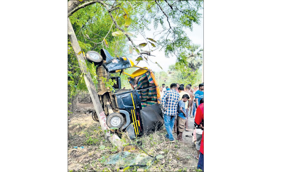 ବିଦ୍ୟୁତ୍ ଖୁଣ୍ଟ ଉପରେ ଚଢ଼ିଗଲା ଅଟୋ