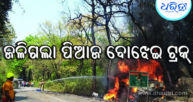 ରାସ୍ତାରେ ହୁତୁହୁତୁ ହୋଇ ଜଳିଗଲା ପିଆଜ ବୋଝେଇ ଟ୍ରକ୍