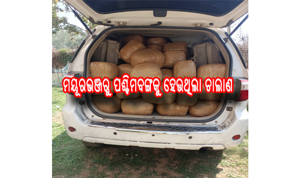 ବାରିପଦା,୧୨ା୨(ନୀଳାଦ୍ରି ବିହାରୀ ଦଣ୍ଡପାଟ): ମୟୂରଭଞ୍ଜ ଜିଲା ଦେଇ ପଶ୍ଚିମବଙ୍ଗକୁ ଚାଲାଣ ବେଳେ ଯଶିପୁର ପୋଲିସ ୩୦ଲକ୍ଷ ଟଙ୍କା ମୂଲ୍ୟର ୩ କୁଇଣ୍ଟାଲରୁ ଊର୍ଦ୍ଧ୍ୱ ଗଞ୍ଜେଇଭର୍ତ୍ତି ଏକ କାର୍ ଜବତ କରଛି। ସୂଚନାଯୋଗ୍ୟ, ଟଙ୍ଗାବିଲା ନିକଟରେ ଯଶିପୁର ପୋଲିସ ପାଟ୍ରୋଲିଂ କରୁଥିବା...