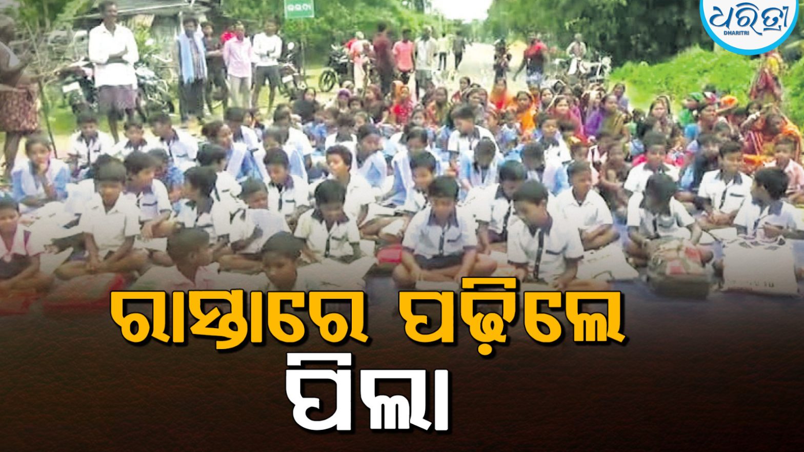 ରାସ୍ତାରେ ବସି ପାଠ ପଢ଼ିଲେ ପିଲା, ଯାତାୟାତ ଠପ୍