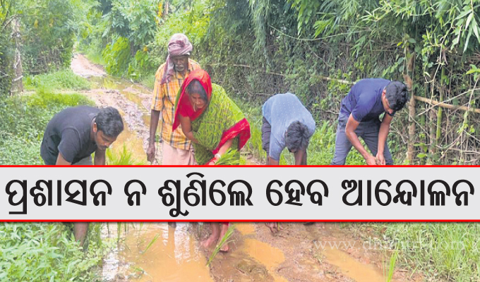 ରାସ୍ତା ଅବସ୍ଥା ଶୋଚନୀୟ: ଧାନତଳି ରୋଇ ପ୍ରତିବାଦ