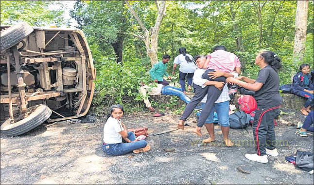 ଘାଟିରେ ବସ୍ ଓଲଟି ଖେଳ ଶିକ୍ଷକ ମୃତ, ୩୪ ଛାତ୍ରୀଛାତ୍ର ଆହତ