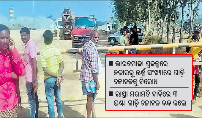 ଉମରକୋଟ,୧ା୧୨(ସ୍ବ.ପ୍ର.): ରାୟପୁର ଠାରୁ ବିଶାଖାପାଟଣା ମଧ୍ୟରେ କେନ୍ଦ୍ର ସରକାରଙ୍କ ଭାରତମାଳା ପ୍ରକଳ୍ପରେ ରାସ୍ତାକାମ ଦ୍ରୁତଗତିରେ ଚାଲିଛି। ତେବେ ରାସ୍ତାକାମ ଯୋଗୁ ହଜାର ହଜାର ଟ୍ରକ୍ ଚାଲିବା କାରଣରୁ ରାସ୍ତା ନଷ୍ଟ ହେବା ସହ ପ୍ରବଳ ଧୂଳି ଉଡ଼ୁଛି। ଏହାର ପରିମାଣ...