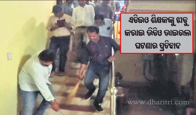 ଡିଇଓଙ୍କ କାର୍ଯ୍ୟାଳୟରେ ଝାଡୁ ମାରିଲେ ଶିକ୍ଷକ