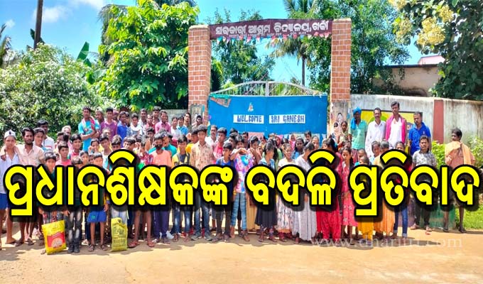 ପ୍ରଧାନଶିକ୍ଷକଙ୍କ ବଦଳି ପ୍ରତିବାଦରେ ଧାରଣା ଦେଲେ ଛାତ୍ରୀଛାତ୍ର