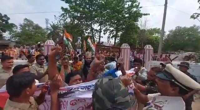 ଥାନା ଘେରାଉ ବେଳେ କଂଗ୍ରେସ କର୍ମୀ-ପୋଲିସ ଧସ୍ତାଧସ୍ତି