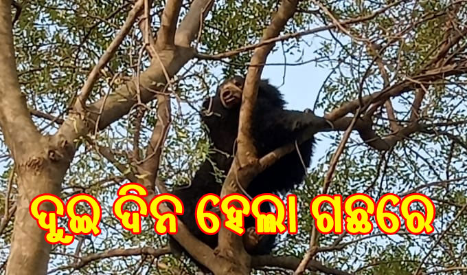 ଦୁଇ ଦିନ ହେଲା ଗଛରେ ଭାଲୁ: ବନ ବିଭାଗର ସବୁ କୌଶଳ ଫେଲ୍