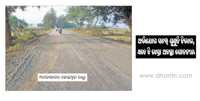 ରାଇଘର, ୨୪।୧(ଡି.ଏନ୍.ଏ.) ନବରଙ୍ଗପୁର ଜିଲା ରାଇଘର ବ୍ଲକ ମୁଖ୍ୟରାସ୍ତାରୁ ଛତିଶଗଡ଼କୁ ସଂଯୋଗ କରୁଥିବା ରାସ୍ତାର ବିଭିନ୍ନ ଛକ ସ୍ଥାନ ଶୋଚନୀୟ। ପୂର୍ତ୍ତ ବିଭାଗ ପକ୍ଷରୁ ନିର୍ମାଣ କରାଯାଇଥିବା ରାସ୍ତା ଉପରେ ବିଭାଗୀୟ ଅଧିକାରୀଙ୍କ ତଦାରଖ ଅଭାବରୁ ସାଧାରଣ ଜନତା ନାନା...