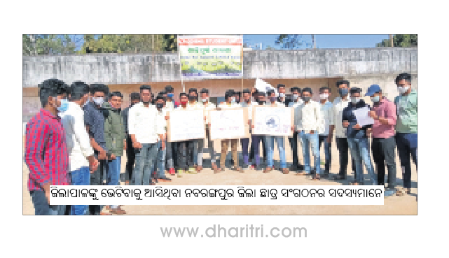 ନବରଙ୍ଗପୁର,୩୦ା୧ (ବି.ପ୍ର.) ଚଳିତ ଦ୍ବାଦଶ ଶ୍ରେଣୀ କାଉନସିଲ୍ ପରୀକ୍ଷା ବାତିଲ କରିବା ନିମନ୍ତେ ନବରଙ୍ଗପୁର ଜିଲା ଛାତ୍ର ସଂଗଠନ ପକ୍ଷରୁ ଦାବି ହୋଇଛି। ମହାମାରୀ ପରିସ୍ଥିତିରେ ପିଲାମାନଙ୍କ ଶିକ୍ଷା ଓ ସ୍ବାସ୍ଥ୍ୟାବସ୍ଥାକୁ ଗୁରୁତ୍ୱ ଦେଇ ପରୀକ୍ଷାକୁ ବାତିଲ କରନ୍ତୁ। ଗଣଶିକ୍ଷା ମନ୍ତ୍ରୀ...