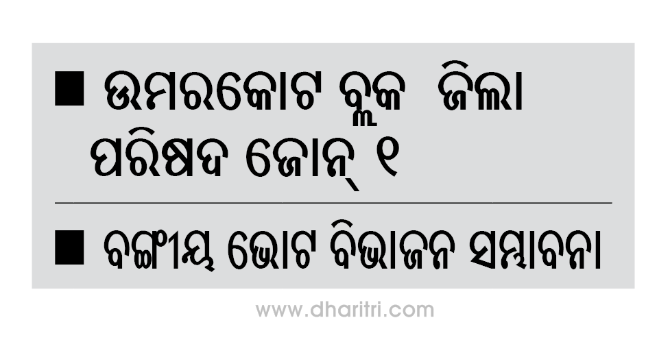 ଉମରକୋଟ,୩୦ା୧(ସ୍ବ.ପ୍ର.) ନବରଙ୍ଗପୁର ଜିଲା ଉମରକୋଟ ବ୍ଲକର ଜୋନ୍ ୧ ଜିଲା ପରିଷଦ ଆସନରେ ବିଜେଡି, ଭାଜପା ଓ କଂଗ୍ରେସ ମଧ୍ୟରେ ତ୍ରିମୁଖୀ ଲଢ଼େଇ ସମ୍ଭାବନା ରହିଛି। ଏହି ଜୋନ୍ ୮ ପଞ୍ଚାୟତ ବୋକଦା, ବେହେଡା, ସୁକିଗାଁ, ଭାମିନି, ହୀରାପୁର, ଜାମରୁଣ୍ଡା,...