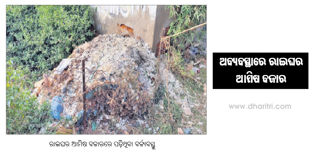 ରାଇଘର, ୨୩ା୧(ଡି.ଏନ୍.ଏ.) ନବରଙ୍ଗପୁର ଜିଲା ରାଇଘର ବ୍ଲକ ସଦର ମହକୁମାସ୍ଥିତ ଧଡ଼ରାପାରାରେ ଥିବା ଆମିଷ ବଜାର ଅବ୍ୟବସ୍ଥାରେ ପଡ଼ିରହିଛି। ଫଳରେ ଗ୍ରାହକ ନାନା ସମସ୍ୟାର ସମ୍ମୁଖୀନ ହେଉଥିବା ଅଭିଯୋଗ ହେଉଛି। ରାଇଘର ବ୍ଲକ କାର୍ଯ୍ୟାଳୟ ପଛପଟେ ରହିଥିବା ଧଡ଼ରାପାରାରେ ଆମିଷ...