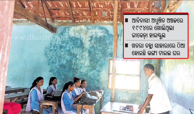 ଭଙ୍ଗା ଟାଇଲ ଛପର ଘରେ ହାଇସ୍କୁଲ ଚାଲିଛି