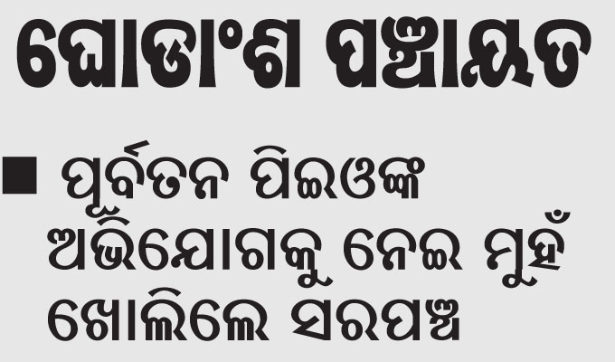 ନାଉଗାଁ,୨୭ା୫(ସ୍ବ.ପ୍ର.): ନାଉଗାଁ ବ୍ଲକ ଘୋଡାଂଶ ପଞ୍ଚାୟତ ସରପଞ୍ଚ ନୀହାର ରଞ୍ଜନ ବସ୍ତିଆଙ୍କ ଅଜାଣତରେ ତାଙ୍କ ଡିଏସ୍ସି(ଡିଜିଟାଲ ସିଗ୍ନେଚର ସାର୍ଟିଫିକେଟ୍)କୁ ଅପବ୍ୟବହାର କରି ପଞ୍ଚାୟତର ଅର୍ଥ ହଡ଼ପ ସହ ଏମ୍ଜିଏନ୍ଆରଇଜିଏସ୍ରେ କାର୍ଯ୍ୟ ନ ହୋଇ ଲକ୍ଷାଧିକ ଟଙ୍କାର ବିଲ୍ ହୋଇଛି। ଗତ...