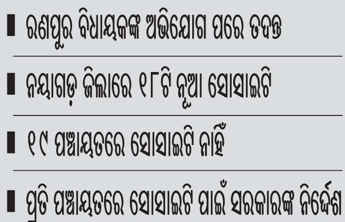 ନୟାଗଡ଼ ଅଫିସ,୧୪।୫:ପ୍ରତି ପଞ୍ଚାୟତରେ ସୋସାଇଟି କରିବା ପାଇଁ ରାଜ୍ୟ ସରକାର ନିଷ୍ପତ୍ତି ନେବା ପରେ ନୟାଗଡ଼ ଜିଲାରେ ନୂଆ ସୋସାଇଟି ପଞ୍ଜୀକରଣ କରାଯାଇଛି। ଜିଲାରେ ୧୮ଟି ନୂଆ ସୋସାଇଟି ପଞ୍ଜୀକରଣ ହୋଇଛି । ତେବେ ଏଥିରୁ ରଣପୁର ବ୍ଲକର ଚମ୍ପାପେଡି,...