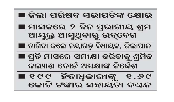 ନୟାଗଡ଼ ଅଫିସ,୧୦।୩: ଓଡ଼ିଶା କୋଠାବାଡ଼ି ଓ ଅନ୍ୟାନ୍ୟ ନିର୍ମାଣ ଶ୍ରମିକ ଏବଂ ଅଣସଙ୍ଗଠିତ ଶ୍ରମିକଙ୍କୁ ସାମାଜିକ କଲ୍ୟାଣ ଯୋଜନାରେ ସହାୟତା ଯୋଗାଇ ଦେବା ପାଇଁ ସହାୟତା ପ୍ରଦାନ ଶିବିର ନୟାଗଡ଼ ସହରର ବିଜୁ ପଟ୍ଟନାୟକ କଲ୍ୟାଣ ମଣ୍ଡପରେ ଗୁରୁବାର ଅନୁଷ୍ଠିତ...