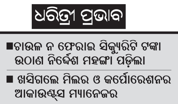 ନୟାଗଡ଼ ଅଫିସ,୧୪।୧୨: ଚାଉଳ ନ ଫେରାଇ ୨ ମିଲରଙ୍କୁ ସିକ୍ୟୁରିଟି ଟଙ୍କା ଉଠାଣ କରିବା ପାଇଁ ସୁଯୋଗ ଦେବା ଘଟଣାରେ ନୟାଗଡ଼ ଜିଲା ଯୋଗାଣ ଅଧିକାରୀ (ସିଏସ୍ଓ) ବ୍ରଜବନ୍ଧୁ ନାୟକ ମଙ୍ଗଳବାର ନିଲମ୍ବିତ ହୋଇଛନ୍ତି । ଖାଦ୍ୟ ଯୋଗାଣ ଓ...