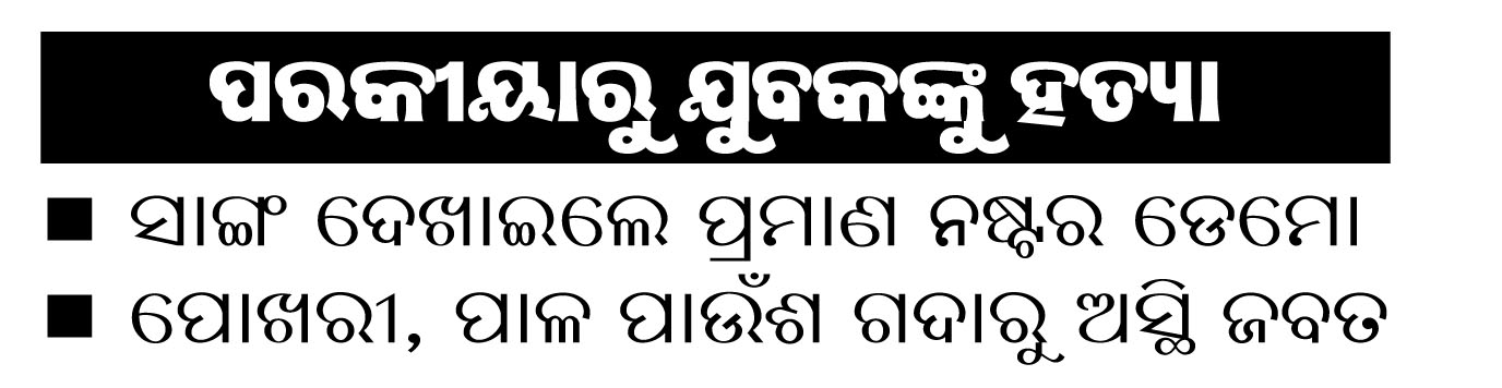 ନୟାଗଡ଼ ଅଫିସ/ନୂଆଗଁା, ୧୩।୧୨(ଡି.ଏନ.ଏ.): ନୟାଗଡ଼ ଜିଲା ନୂଆଗଁା ଥାନା ମହିପୁର ଫାଣ୍ଡି ଅନ୍ତର୍ଗତ ପଥରପାଟଣା ଗଁାରେ ଘଟିଥିବା ହତ୍ୟାକାଣ୍ଡର ଗୁମର ଫିଟିଛି। ପରକୀୟାରୁ କଟକ ଜିଲା ଲାଲବାଗ୍ ଥାନା ସତୀଚଉରା ମହାନ୍ତିପଡ଼ାର ଶୈଳେନ୍ଦ୍ରନାଥ ଜେନାଙ୍କୁ ଅପହରଣ କରାଯାଇ ହତ୍ୟା କରାଯାଇଥିବା...