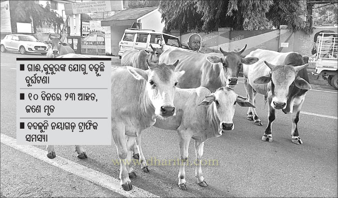 ନୟାଗଡ଼ ଅଫିସ,୧।୯: ନୟାଗଡ଼ ଜିଲା ସଦର ମହକୁମାର ରାସ୍ତା ନିରାପଦ ନୁହେଁ । ରାସ୍ତାରେ ଗୋରୁ ଓ କୁକୁର ମାଳ ମାଳ ହୋଇ ବୁଲିବା କାରଣରୁୁ ବଢ଼ୁଛି ଦୁର୍ଘଟଣା । ଗତ ୧୦ ଦିନ ଭିତରେ ଦୁର୍ଘଟଣାରେ ଗଲାଣି ଗୋଟିଏ...