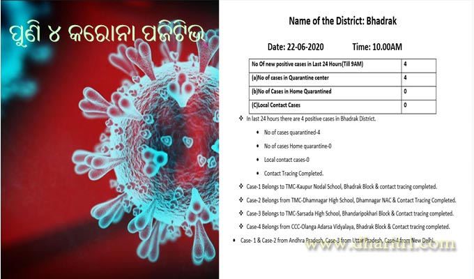 ଭଦ୍ରକରେ କରୋନା ଆକ୍ରାନ୍ତଙ୍କ ସଂଖ୍ୟା ୨୦୦ ଟପିଲା