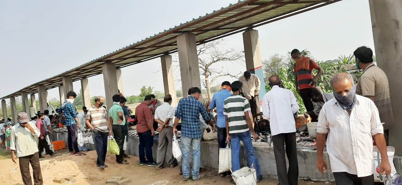 ମାଛ ମାର୍କେଟରେ ସାମାଜିକ ଦୂରତା ରଖୁନାହାନ୍ତି ଲୋକେ