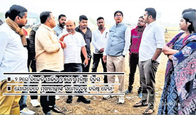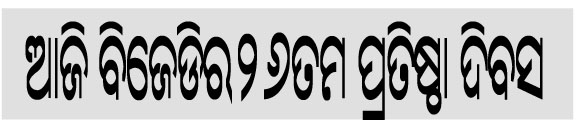 ପୁରୀ ଅଫିସ,୨୬ା୧୨:ବିଜେଡିର ୨୬ତମ ପ୍ରତିଷ୍ଠା ଦିବସ ତଥା ରୌପ୍ୟ ଜୟନ୍ତୀ ପୁରୀରେ ସୋମବାର ଭବ୍ୟ ସମାରୋହ ମଧ୍ୟରେ ପାଳନ କରାଯିବ। ଏଥିପାଇଁ ତାଳବଣିଆରେ ଦଳ ପକ୍ଷରୁ ସମସ୍ତ ପ୍ରସ୍ତୁତି ଶେଷ ହୋଇଛି। ଦଳ ପକ୍ଷରୁ ମେଗା ଆୟୋଜନ କରାଯାଇଥିବାବେଳେ କାର୍ଯ୍ୟକ୍ରମ...