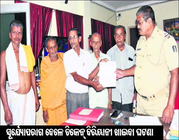 ପୁରୀ ଅଫିସ, ୨୮ା୧୦:ହେତୁବାଦୀମାନେ ଗତ ମଙ୍ଗଳବାର ସୂର୍ଯ୍ୟୋପରାଗ ସମୟରେ ଚିକେନ୍ ବିରିୟାନୀ ଖାଇବା ସହ ବ୍ରାହ୍ମଣ ସମାଜକୁ ଆପେକ୍ଷ କରିଥିବା ଅଭିଯୋଗରେ ଅଖିଳ ଭାରତ ହିନ୍ଦୁ ମହାସଭା ପକ୍ଷରୁ ଗୁରୁବାର ପୁରୀ ଟାଉନ ଥାନାରେ ହେତୁବାଦୀ ସଙ୍ଗଠନ ବିରୋଧରେ ଏତଲା ଦିଆଯାଇଛି।…