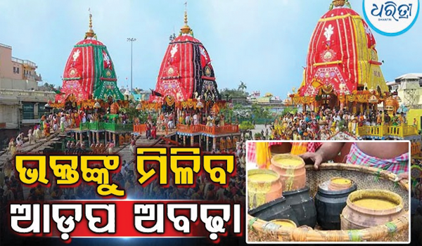 ପୁରୀ,୧୦।୭: ଜନ୍ମବେଦୀରେ ଚତୁର୍ଦ୍ଧାମୂରତି। ଆଡ଼ପ ଦର୍ଶନ ଲାଗି ଲକ୍ଷଲକ୍ଷ ଭକ୍ତ ଓ ଶ୍ରଦ୍ଧାଳୁଙ୍କ ଭିଡ଼ ଲାଗି ରହିଛି। ତେବେ ଦର୍ଶନ ସହ ଆଜିଠୁ ଭକ୍ତଙ୍କୁ ଆଡ଼ପ ଅବଢ଼ା ମିଳିବ। କୁହାଯାଏ ଏଇ ଆଡ଼ପ ଅବଢା ଖାଇଲେ କୋଟି ଜନ୍ମର ପୂଣ୍ୟଫଳ...
