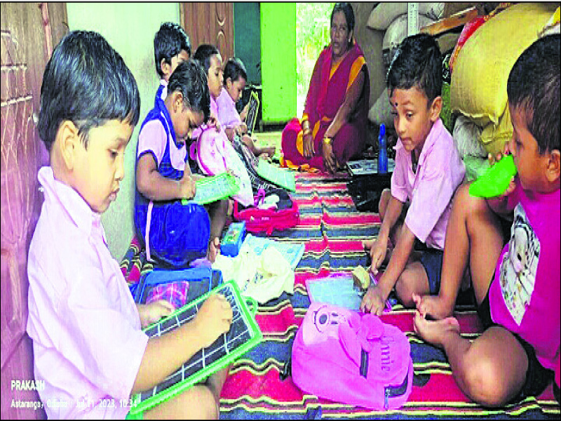 ଅଙ୍ଗନଓ୍ବାଡି କେନ୍ଦ୍ର ନାହିଁ, ନିଜ ଘରେ ପଢ଼ାଉଛନ୍ତି କର୍ମୀ