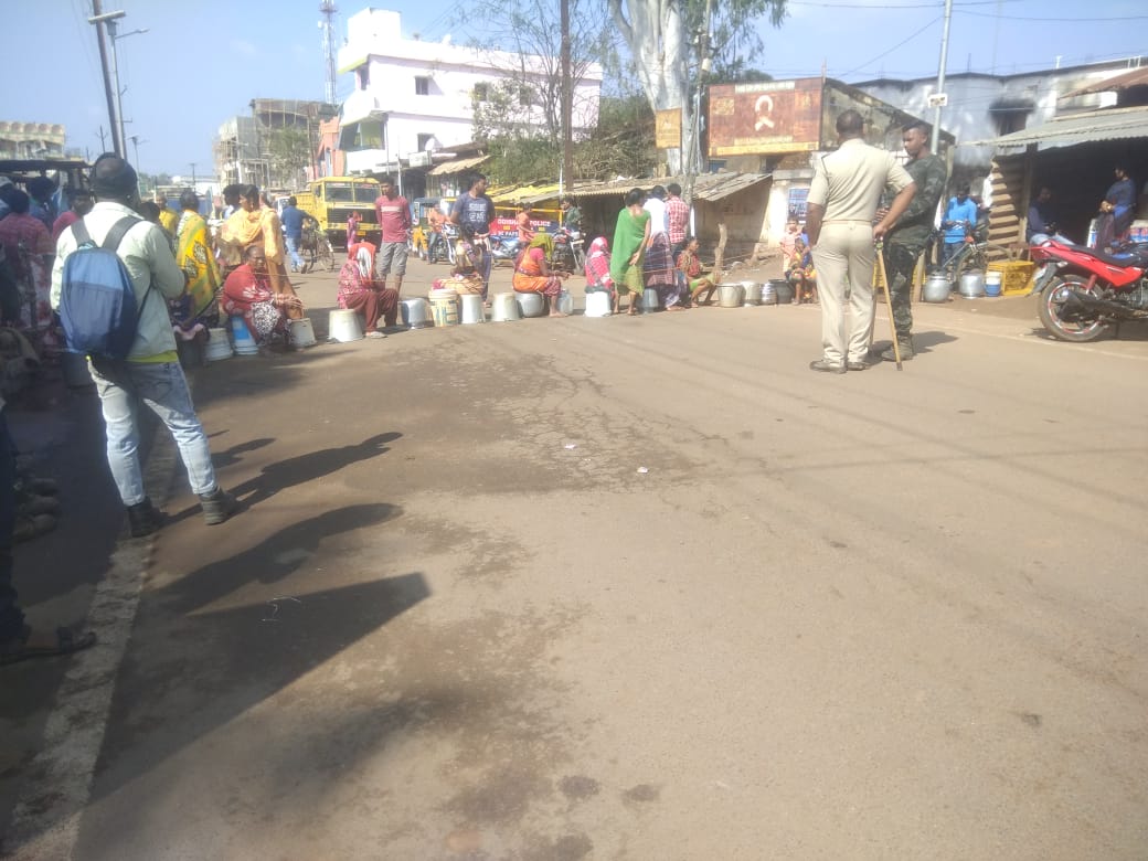 ପାଣି ପାଇଁ ରାଜରାସ୍ତାରେ ମହିଳା