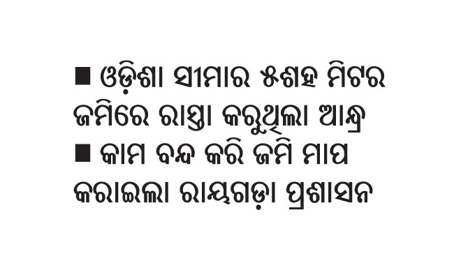 ରାୟଗଡ଼ା ଅଫିସ,୧।୨: କୋରାପୁଟ ଜିଲା କୋଟିଆ ପରେ ଏବେ ରାୟଗଡ଼ା ଜିଲାରେ ଜବରଦଖଲ ଉଦ୍ୟମ କରୁଛି ଆନ୍ଧ୍ର ସରକାର। ଆପୋସ ସମାଧାନ ପାଇଁ ଆନ୍ଧ୍ର ପ୍ରଶାସନିକ ଅଧିକାରୀଙ୍କୁ ଡକାଯାଇଥିଲେ ମଧ୍ୟ ସେମାନେ ଆସି ନ ଥିଲେ। ଏହାପରେ ଓଡ଼ିଶା ଅଧିକାରୀମାନେ...