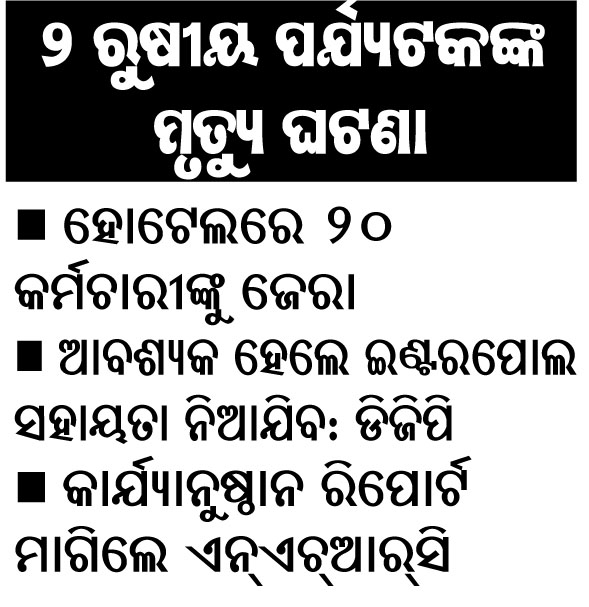 ୨ ରୁଷୀୟ ପର୍ଯ୍ୟଟକଙ୍କ ମୃତ୍ୟୁ ଘଟଣା: ୪ର୍ଥ ଦିନରେ ଆମ୍ବୁଲାନ୍ସ, ହୋଟେଲ କର୍ମଚାରୀଙ୍କୁ ଜେରା