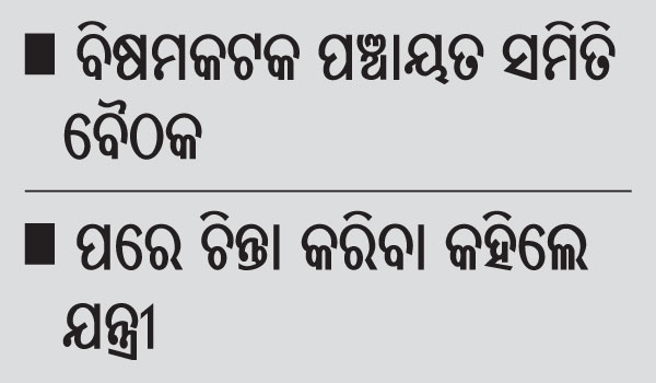 ବିଷମକଟକ,୨୪ା୧୨(ଡି.ଏନ୍.ଏ.): ରାୟଗଡ଼ା ଜିଲା ବିଷମକଟକ ପଞ୍ଚାୟତ ସମିତି ବୈଠକ ଶୁକ୍ରବାର ଅନୁଷ୍ଠିତ ହୋଇଯାଇଛି। ଏଥିରେ ବ୍ଲକର ୨୧ ପଞ୍ଚାୟତର ସରପଞ୍ଚ, ସମିତି ସଭ୍ୟା, ସଭ୍ୟ ଯୋଗ ଦେଇଥିଲେ। ବୈଠକରେ ବିଷମକଟକ ବ୍ଲକ ଅଧ୍ୟକ୍ଷା ଯଶୋଦା ହୁଇକା, ବିଡିଓ ସଦାଶିବ ନାୟକ,...