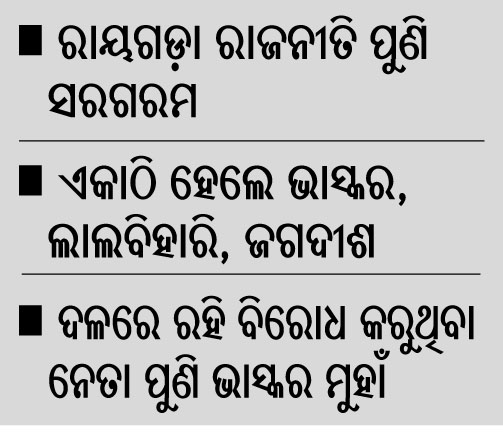ରାୟଗଡ଼ା,୧୯ା୧୨(ସ୍ବ.ପ୍ର.):ରାୟଗଡ଼ା ଜିଲା ରାଜନୀତି ପୁଣି ସରଗରମ ହୋଇଛି। ଶନିବାର ପୂର୍ବତନ ରାଜ୍ୟ ସଭା ସଦସ୍ୟ ତଥା ବରିଷ୍ଠ ବିଜେଡି ନେତା ଭାସ୍କର ରାଓଙ୍କ ତତ୍ତ୍ୱାବଧାନରେ ଦଳ ପକ୍ଷରୁ ବିରାଟ ସମାବେଶ ଓ ପଦଯାତ୍ରା ଆୟୋଜନକୁ ନେଇ ଏବେ ଚର୍ଚ୍ଚା ଜେର...