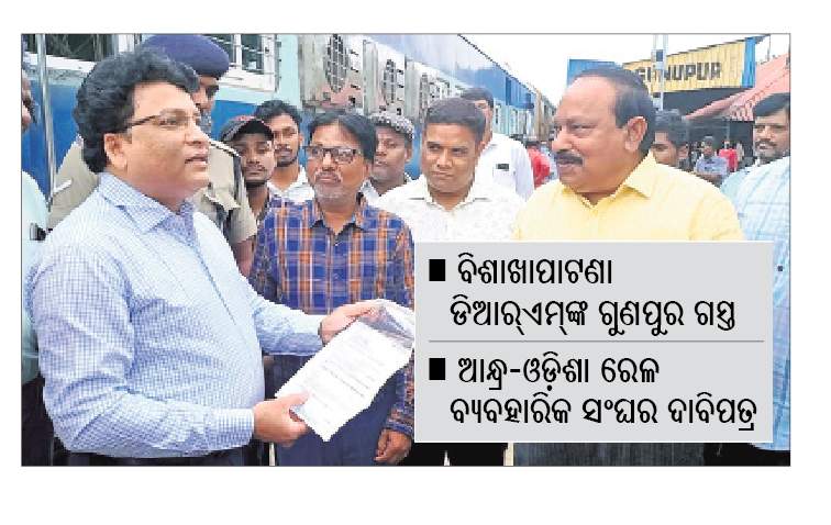 ଗୁଣପୁର,୩୦।୬(ଡି.ଏନ୍.ଏ.): ପୂର୍ବତଟ ରେଳପଥ ଅର୍ନ୍ଗତ ବିଶାଖାପାଟଣା ଡିଭିଜନର ଡିଆର୍ଏମ୍ ଅନୁପ କୁମାର ଶତପଥୀ ବୁଧବାର ସ୍ବତନ୍ତ୍ର ଟ୍ରେନ୍ ଯୋଗେ ଗୁଣପୁର ଗସ୍ତକରି ଏଠାରେ ଚାଲିଥିବା ବିଭିନ୍ନ ଉନ୍ନୟନ ମୂଳକ କାର୍ଯ୍ୟ ତଦାରଖ କରିଥିଲେ। ପାଣି ଟାଙ୍କି ନିର୍ମାଣ, ରନିଂ ରୁମ୍, ଷ୍ଟେଶନ...