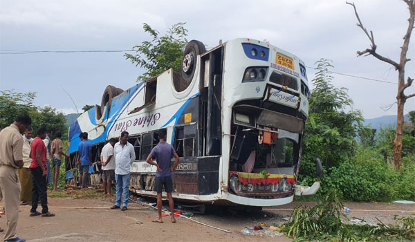 ଭାରସାମ୍ୟ ହରାଇ ଓଲଟିଲା ବସ୍: ଜଣେ ମୃତ, ୩୦ ଆହତ
