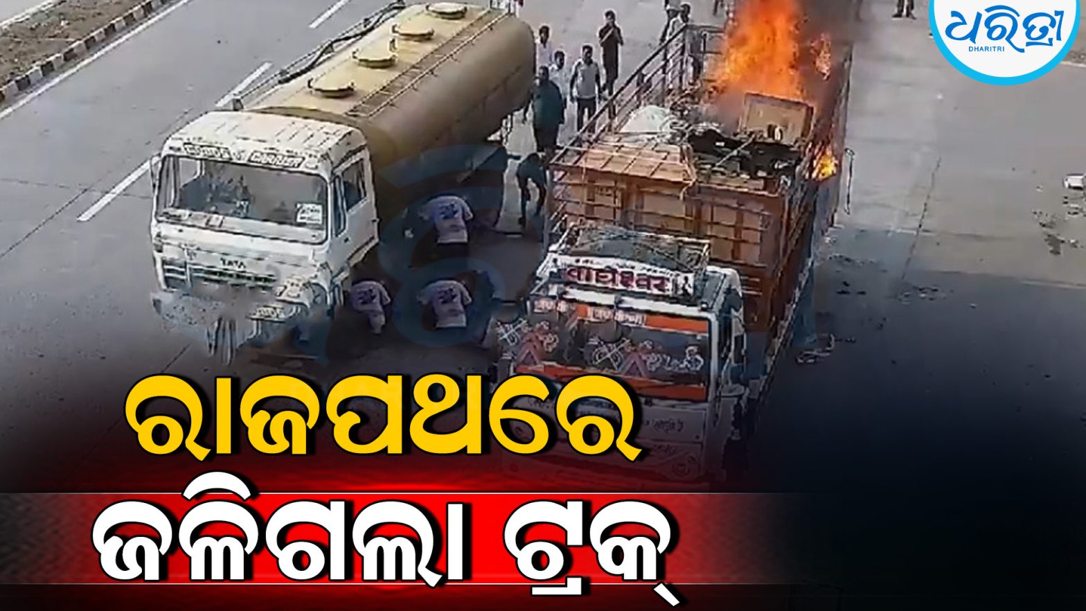 ରାସ୍ତାରେ ଜଳିଗଲା ଇଲେକ୍ଟ୍ରୋନିକ୍ସ ସାମଗ୍ରୀ ବୋଝେଇ ଟ୍ରକ