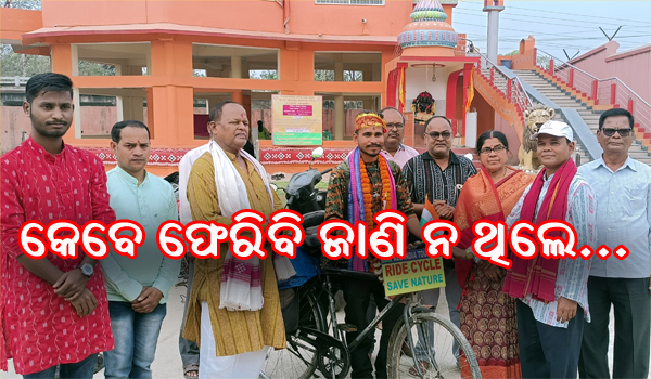ସମ୍ବଲପୁର, ୪।୩ (ଭବାନୀଶଙ୍କର ଭୋଇ): ପରିବେଶ ସଚେତନତା ଲକ୍ଷ୍ୟ ରଖି ଦେଢବର୍ଷ ତଳେ ବରଗଡ ନୂଆଗଡରୁ ବାହାରିଥିବା ନନ୍ଦିଘୋଷ ଖମାରୀ ଏହା ଭିତରେ ୨୦ ହଜାର କିଲୋମିଟର ସାଇକେଲରେ ଯାତ୍ରା କରି ସାରିଛନ୍ତି। ତାଙ୍କର ସାଇକେଲ ଯାତ୍ରା ଭିତରେ ସେ...
