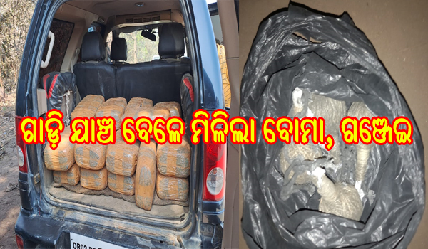 ସମ୍ବଲପୁର,୧୩।୨(ବ୍ୟୁରୋ): ସମ୍ବଲପୁର ଜିଲା ଠେଲକୋଲି ଥାନା ଅଧୀନ ଖିଣ୍ଡା ଛକରେ ପୋଲିସ ଗାଡ଼ି ଯାଞ୍ଚ ବେଳେ ଏକ କାରରୁ ୪ଟି ବୋମା, ୫୦ କେଜି ଗଞ୍ଜେଇ ସହ ଉତ୍ତରପ୍ରଦେଶ ବିଧାନସଭା ପ୍ରବେଶ ପାଇଁ ପାସ୍ ଓ ଏକାଧିକ ନମ୍ବର ପ୍ଳେଟ...