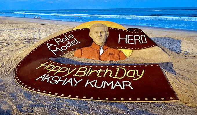ଆଜି ଖିଲାଡି କିଙ୍ଗ୍ ଅକ୍ଷୟ କୁମାରଙ୍କ ହାପି ବର୍ଥ ଡେ। ୧୯୬୭ ସେପ୍ଟେମ୍ବର ୯ ତାରିଖଷର ଅମୃତସରରେ ଜନ୍ମଗ୍ରହଣ କରିଥିଲେ ଅକ୍ଷୟ। ଏହି ଅବସରରେ ତାଙ୍କ ନିକଟକୁ ଶୁଭେଚ୍ଛାର ସୁଅ ଛୁଟିଛି। ପଦ୍ମଶ୍ରୀ ସୁଦର୍ଶନ ପଟ୍ଟନାୟକ ପୁରୀ ବେଳାଭୂମିରେ ବାଲୁକାକଳା...