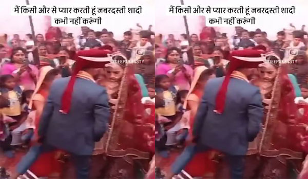 ଜୋର ଜବରଦସ୍ତି ବିବାହ କରି ପାରିବି ନାହିଁ କହି ମଣ୍ଡପରୁ ବରକୁ ଘୋଷାଡି ଆଣିଲେ କନ୍ୟା, ଦେଖନ୍ତୁ ଭିଡିଓ