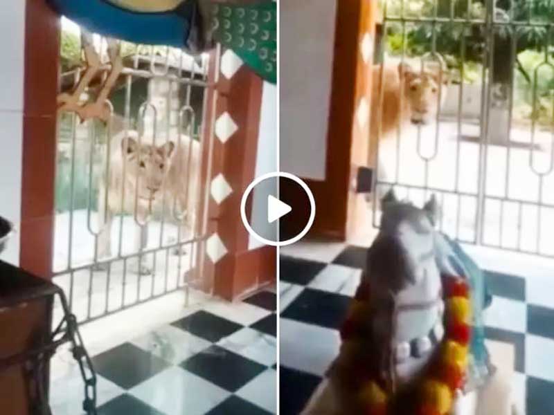ମନ୍ଦିରରେ ପହଞ୍ଚିଲେ ସିଂହ ପଲ, ଅଡୁଆରେ ପଡିଲେ ପୁରୋହିତ , ଭିଡିଓ ଭାଇରାଲ…