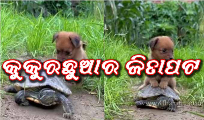 କଇଁଛ ପିଠିରେ ବସି ମଜା ନେଉଛି କୁକୁରଛୁଆ, ଭିଡିଓ ଦେଖିଲେ…