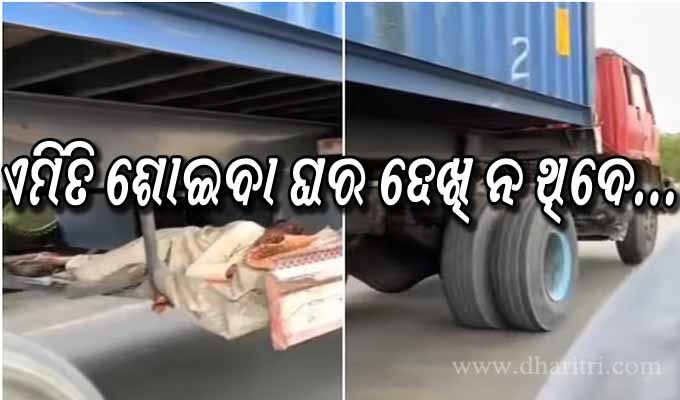 ଟ୍ରକ୍ ତଳେ ଏମିତି ଶୋଇ ପବନ ବେଗରେ ଝୁଲୁଛନ୍ତି ଜଣେ ବ୍ୟକ୍ତି, ଭିଡିଓ ଦେଖିଲେ…