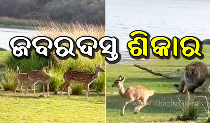 ନଦୀରୁ ପାଣି ପିଇ ଫେରୁଥିଲେ ହରିଣପଲ, ହଠାତ୍ ବୁଦା ଭିତରୁ ବାଘ ବାହାରି କଲା ଏମିତି, ଭିଡିଓ ଦେଖିଲେ…