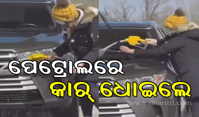 ପାଣି ବଦଳରେ ପେଟ୍ରୋଲରେ କାର୍ ଧୋଇଲେ ମହିଳା, ଭିଡିଓ ଦେଖିଲେ…